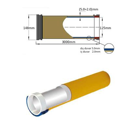 Ürün Özelliği: 1- Çift Cidarlı 2- DN125X3000mm 3- 2+5mm 4- 148mm Flanş 5- 68HRC 6- 85 BAR 7- Fırın Boyalı